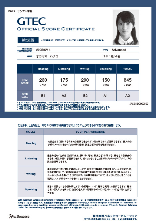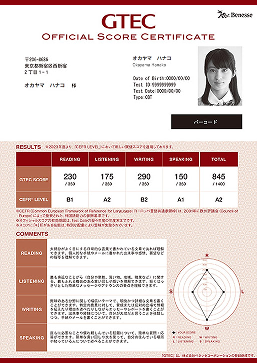 「GTEC」スコアはCEFRレベルで英語でできること(can-do statements)が確認できます。また、オフィシャルスコア証明書(OFFICIAL SCORE CERTIFICATE)が入試で活用できる大学も多数あります。