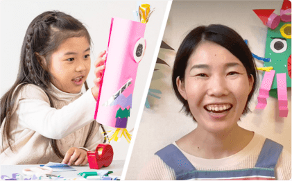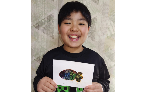 作品を発表するときに、先生がみんなとは違うところや、工夫したところを聞いてほめてくれたり、質問したときも「いい質問したね」と言ってくださるんです。もともと絵を描くのが好きでしたが、ほめてもらえるのが嬉しいみたいで、夢中で楽しく作品を作っています。