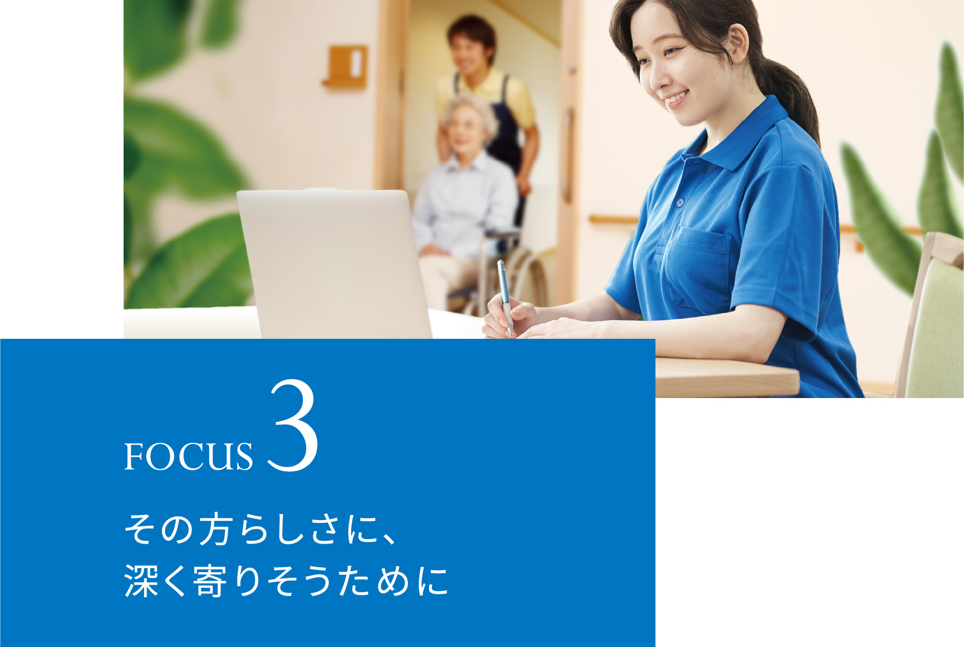 ベネッセの“介護×テクノロジー”は、ご入居者さまのQOL向上や、スタッフがご入居者さまと向き合う時間を増やして気付きを生むことを重視しています。主役である人をテクノロジーで支え、より良いサービスを提供するために進化を続けています。
