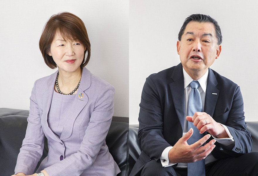 様々な環境変化を踏まえ、2020年に発表した中期経営計画をブラッシュアップした変革事業計画を策定するにあたり、現状に即したマテリアリティの見直しを行いました。パーパスの実現に向けた3つの事業テーマとそれらを支える土台としてのESGの推進を新たなマテリアリティに設定しています。