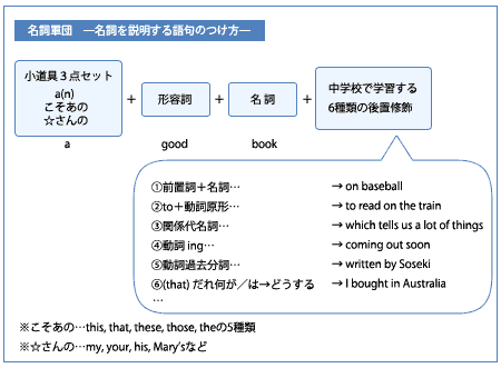 日本語と英語の語順の違いを再確認させるためには、とてもよい教材です。英語では、名詞をさらに詳しく説明するときは、その直後に修飾語句や修飾節をおくことを知らせます。全文訳は最後に行い、まずは英語の感覚を味わうために、以下のように意味を紹介します。