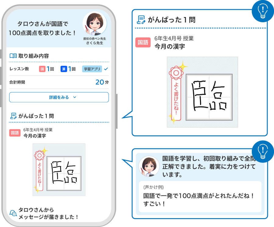 日々のお子さまの取り組みをわかりやすくお伝え