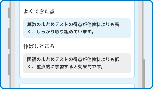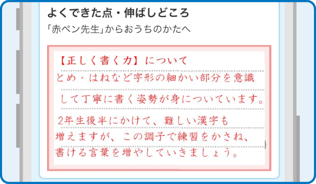 お子さまがよくできた点や伸ばしどころが、