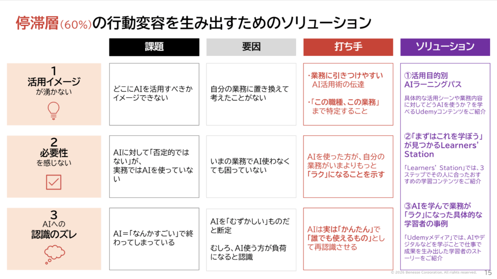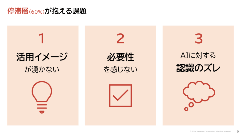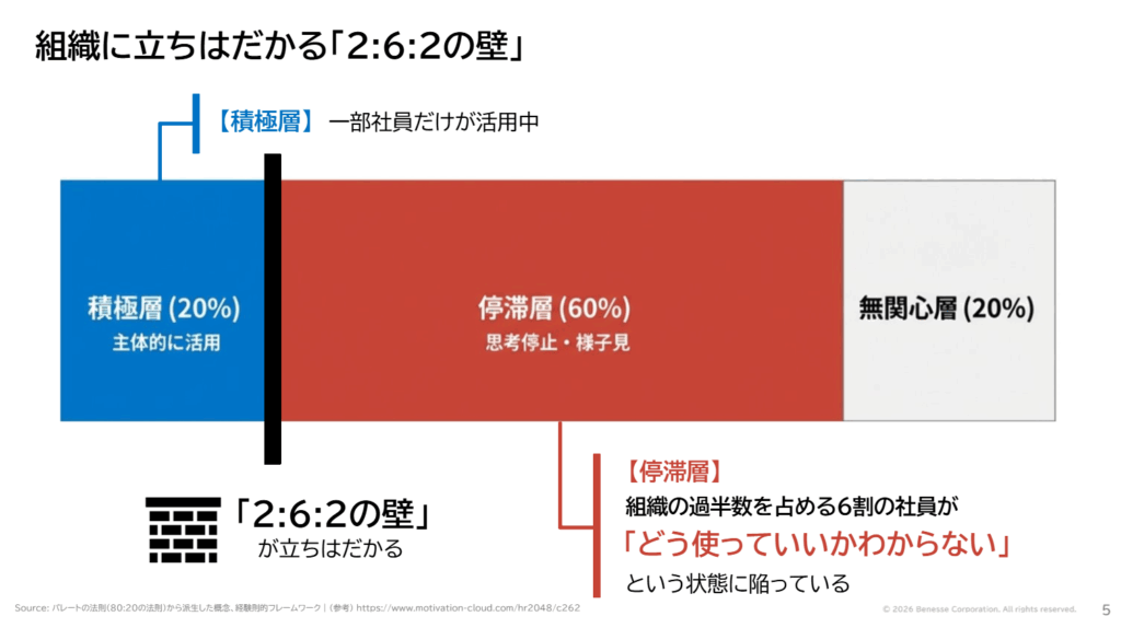 AI導入企業の多くが直面する「2:6:2の壁」に着目。