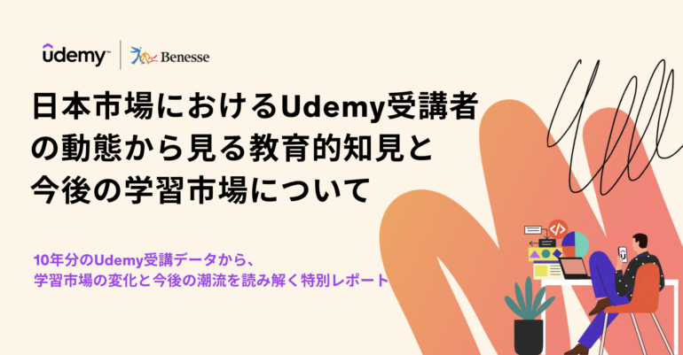 ベネッセが2015年にUdemy社と提携して以降、日本におけるオンライン学習は急速に広がりを見せてきました。法人向け「Udemy Business」の展開、政府によるリスキリング支援、さらにはコロナ禍や生成AIの登場といった社会変化が、学習市場にどのような影響を与えてきたのか。本資料では、国内2000万人以上の学習実績や10年間の受講者データをもとに、今後の学習市場の潮流について解説します。
