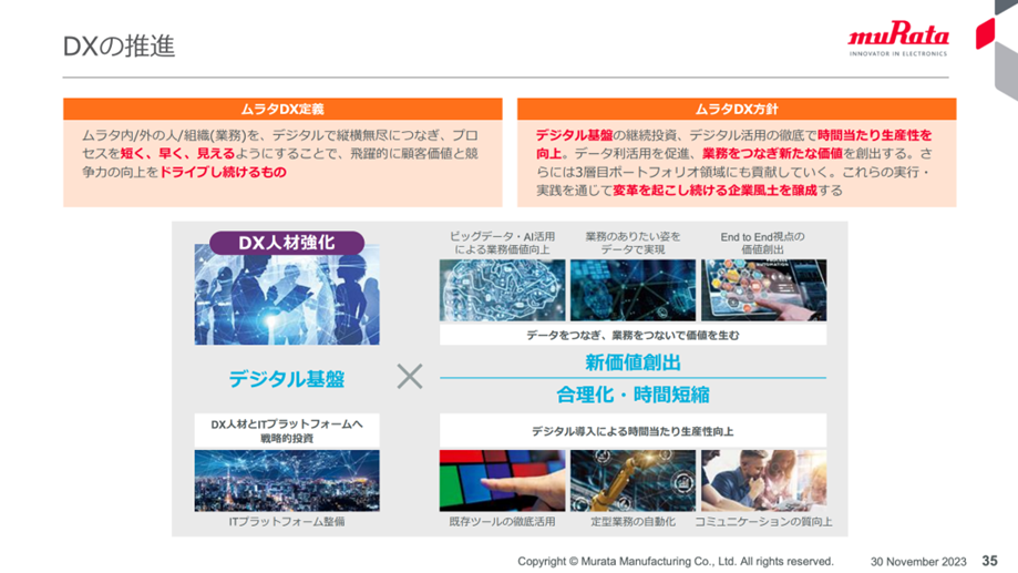 図1 「中期方針2024」に示されたDX推進の考え方(村田製作所 提供)