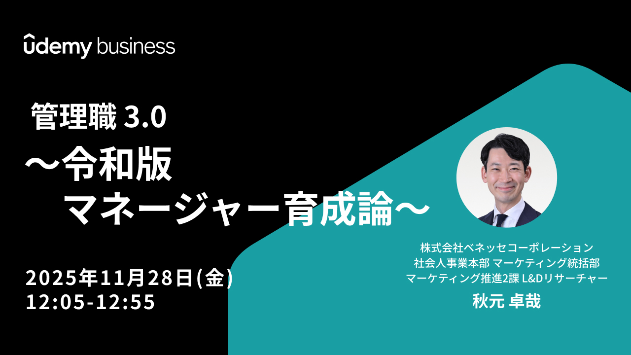 ◆略歴:ベネッセに新卒入社後、東北支社にて学校向けコンサルティング営業に従事。その後、英語4技能検定試験「GTEC」のテスト編集者を経て、2022年4月より、Udemy Businessのカスタマーサクセスを担当。顧客のオンボーディング支援や、組織内の学習推進、成果の可視化などに従事。2023年からマーケティングチームとして、顧客の活用支援コンテンツの整備、人事/HR向けコミュニティー運営など、幅広く活動中。青森県出身。