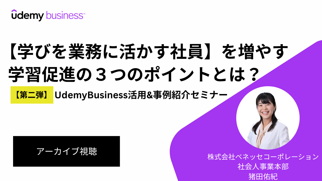 さらに、実際にUdemy Businessを導入し、社員が学んだ知識を業務の成果に結びつけるようになった企業の事例を紹介しながら、学習定着を促す具体的なアプローチについてもお伝えします。