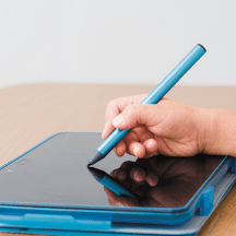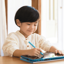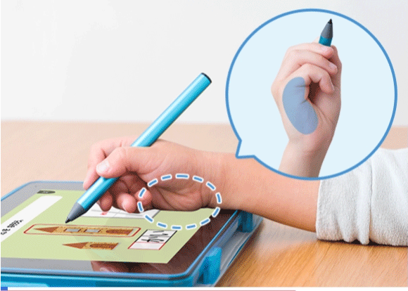 専用タッチペンで、画面に手をついて書ける静電式のタブレットだから、鉛筆で書くときと同じように書く練習ができます。