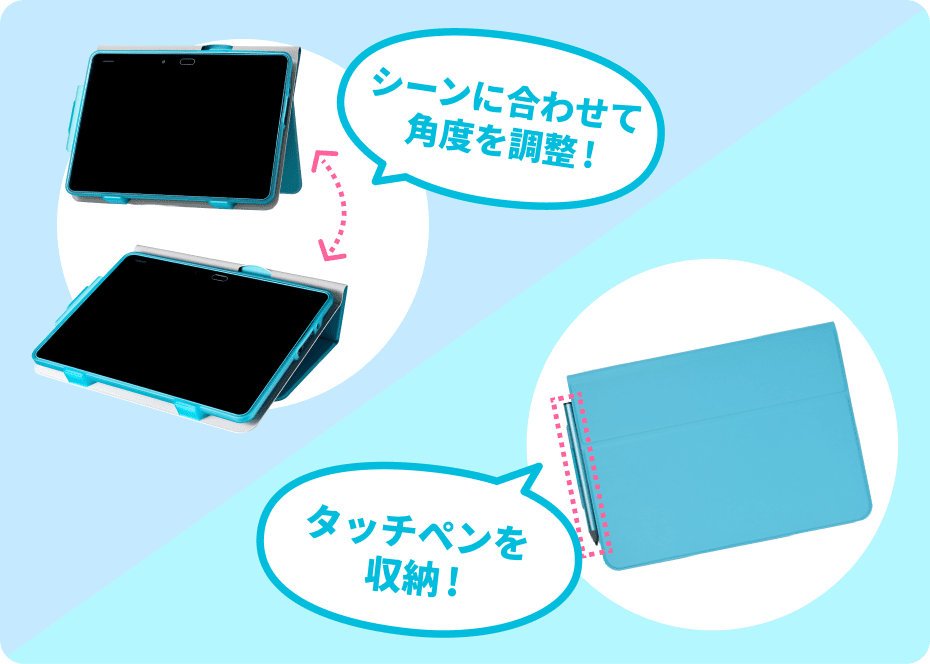 スタンドにもなるタブレットカバーで姿勢よく取り組めます。