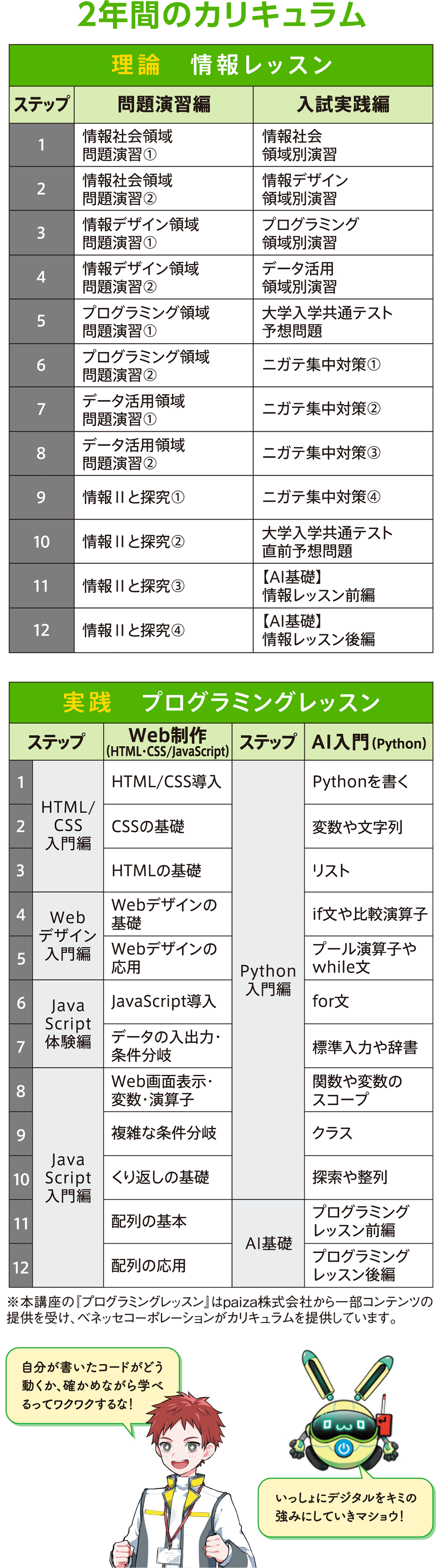 ※「プログラミング講座 Web制作・AI入門」は、ベネッセコーポレーションとpaizaが共同開発した実践的なプログラミングを基礎から学習できる新しい講座です。
